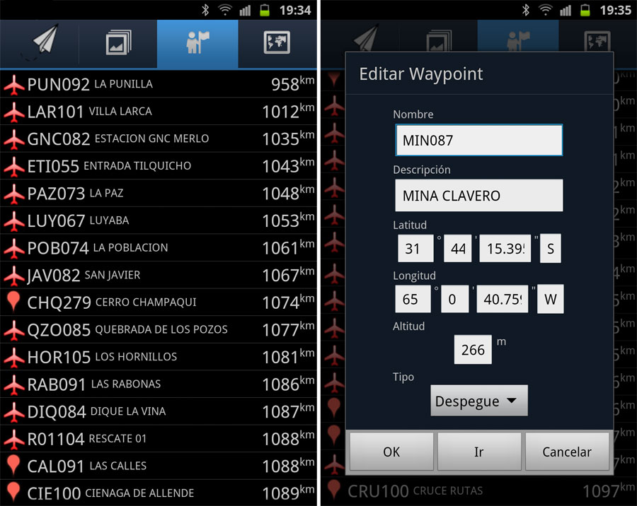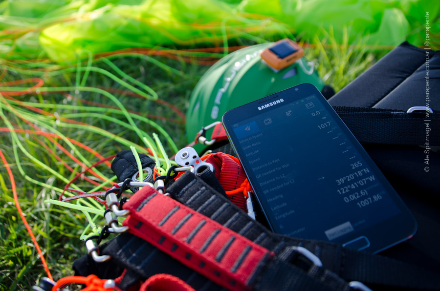 En las pruebas utilizamos la aplicación Gaggle desarrollada por Kevin Hester y que en los últimos meses de 2011 realizamos la traducción al castellano. Quedan cosas por actualizar pero realmente es muy buena como funciona y como se puede complementar con un vario sonoro como el Compass Beeper en equipos que no poseen sensor barométrico (por ejemplo Samsung Galaxy S2). Con esta aplicación tenemos un verdadero instrumento de vuelo que nos permitirá seleccionar qué información queremos visualizar en vuelo, mapas, waypoints y luego también reproducir los vuelos que ya realizamos para análisis.